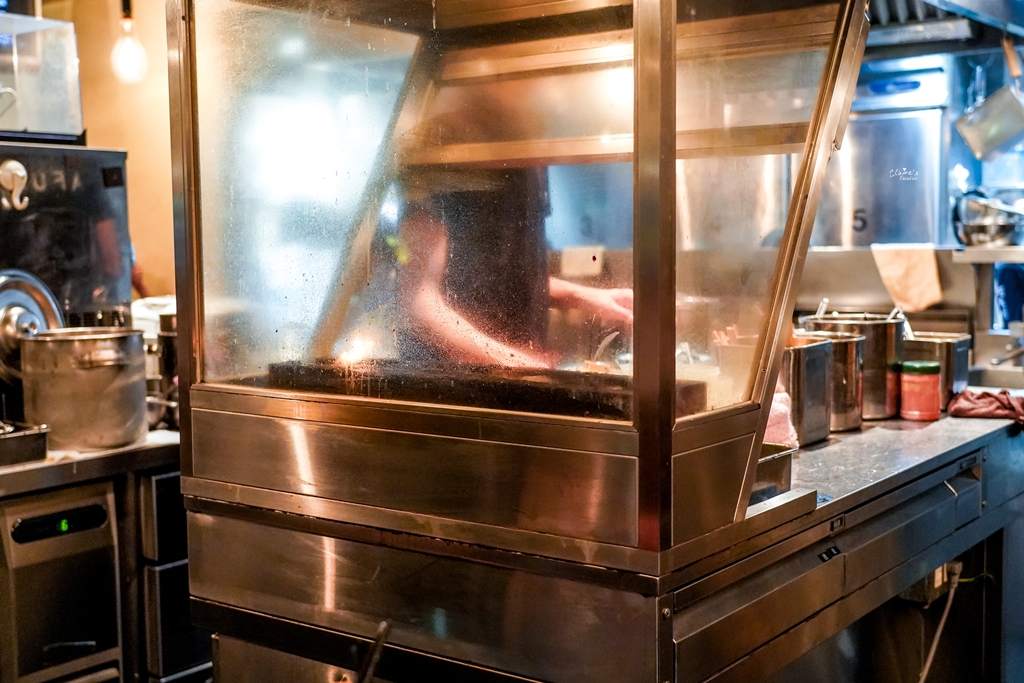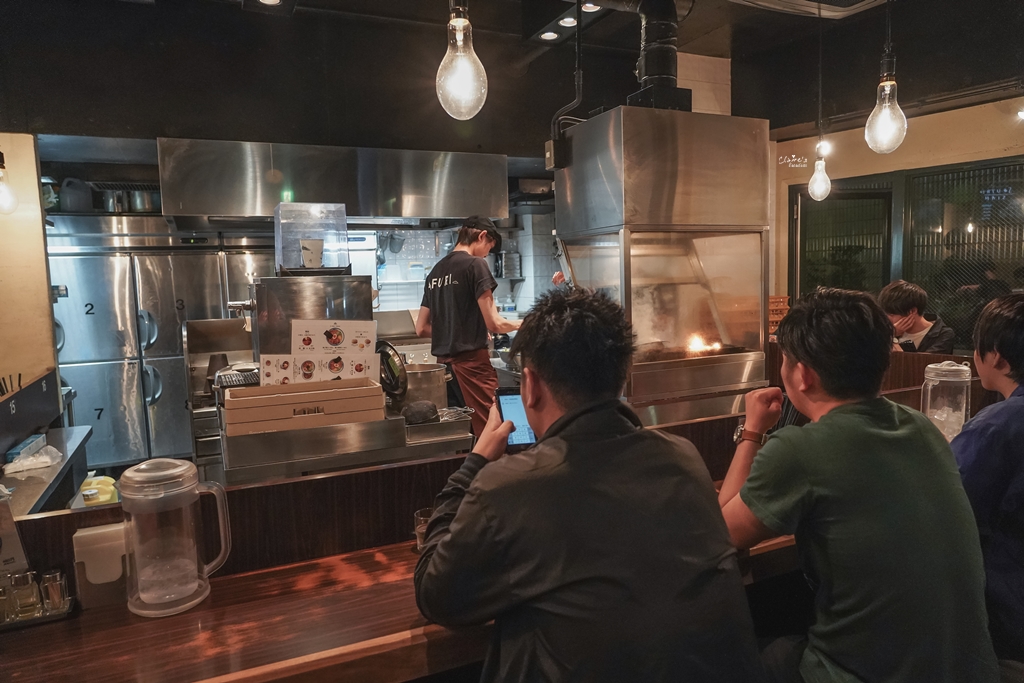 座位圍繞著吧檯,可以很清楚的看到煮麵與叉燒肉炙燒的過程,聞著燒肉的香氣,覺得等待的時間特別漫長…