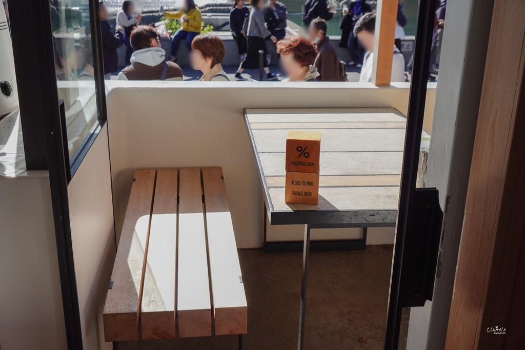 由於店內僅有一組座位,大多數的人都會選擇在渡月橋旁邊坐著喝咖啡,如果想內用的話,還需要額外支付30分鐘1000日圓的費用。