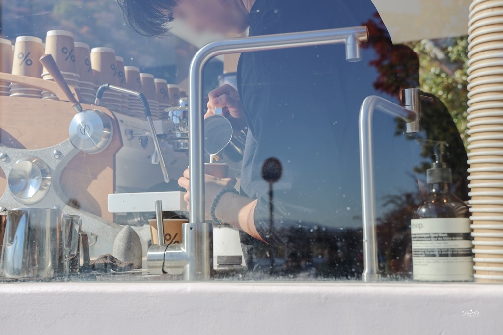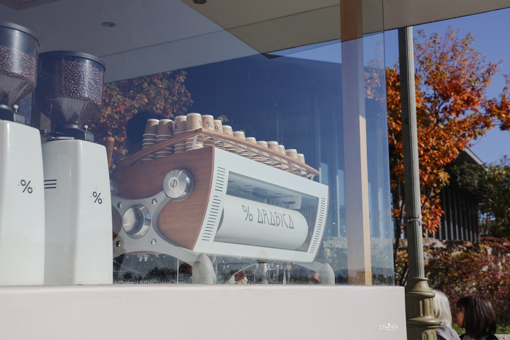 %Arabica咖啡嵐山店位於渡月橋附近,從 JR 嵯峨嵐山站走過來大約15分鐘。嵐山店的人氣,應該是所有%Arabica咖啡分店裡,排行前幾名的一間,之前瀏覽社群媒體的時候,幾乎每個來嵐山的遊客,都會在這裡駐足。
