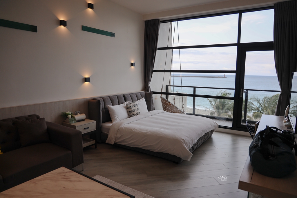 雖然沒能住到第一順位的6樓玻璃屋房型,但是我對這間5樓海景房也挺滿意的,室內空間寬敞,整間都鋪了木地板,簡約有質感的風格深得我心,落地窗看過去就是遼闊的海景,才一進門就只想待在裡面,哪裡都不去,也難怪這間是漫漫日出回頭率最高的房型。