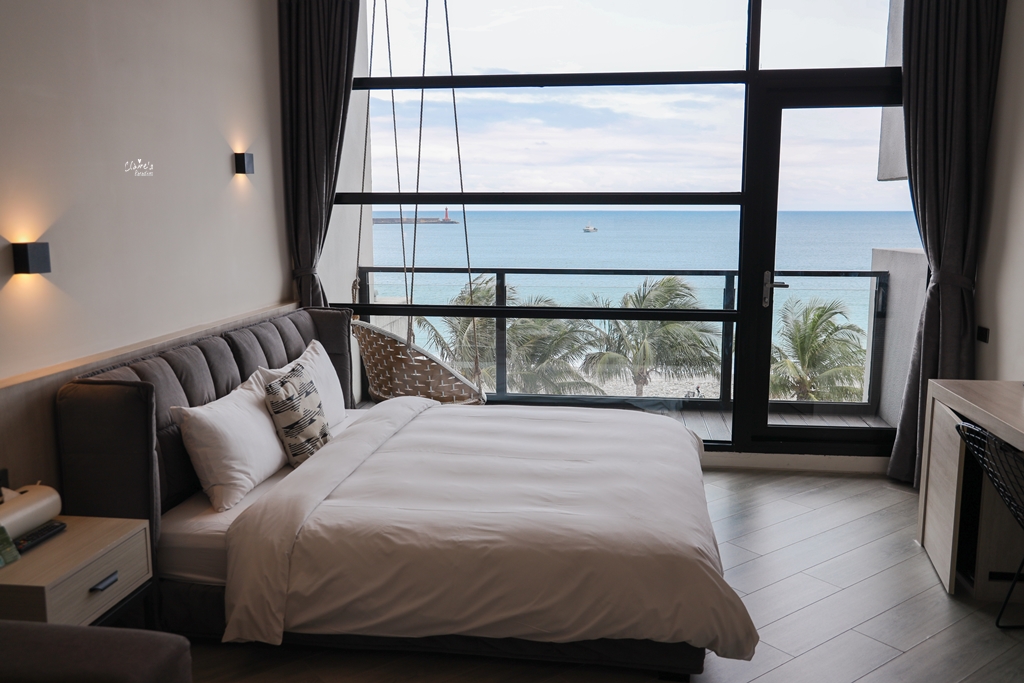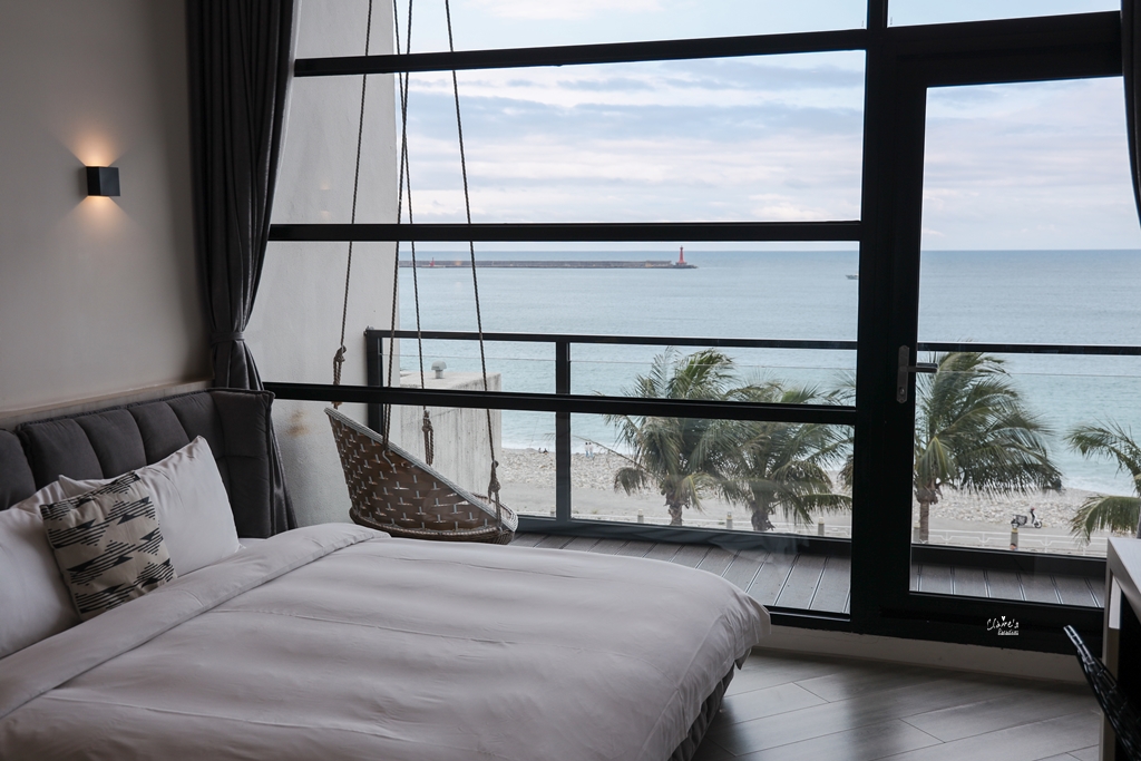 漫漫日出的2~6樓都是客房,房型分成海景房與街景房,而每一層樓的海景房風格都有些不同,可以依照自己的喜好去選擇。我們這次住的是5樓的無敵海景雙人套房,特色是陽台有一個盪鞦韆,然後房間內沒有浴缸。(點這裡查詢漫漫日出的房價)