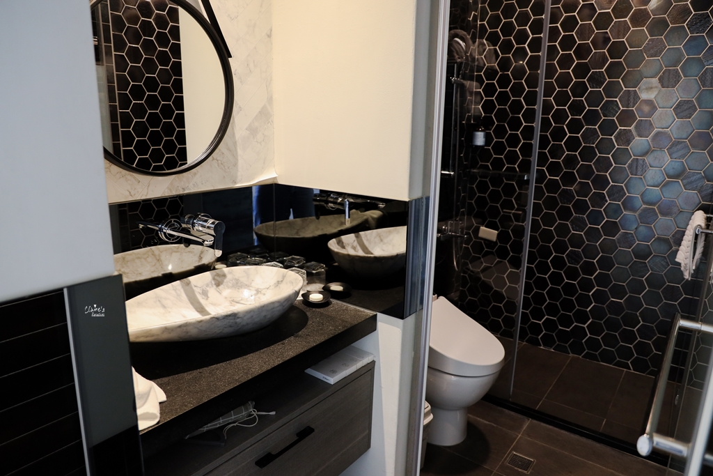 至於衛浴設備的部分,5樓海景房沒有浴缸,是採用乾濕分離的配置,有免治馬桶這點還不錯,但是我跟先生一致認為馬桶坐墊很小,使用起來有點卡,嗯…有點難形容那種感受,只有實際體驗過的人才會懂。