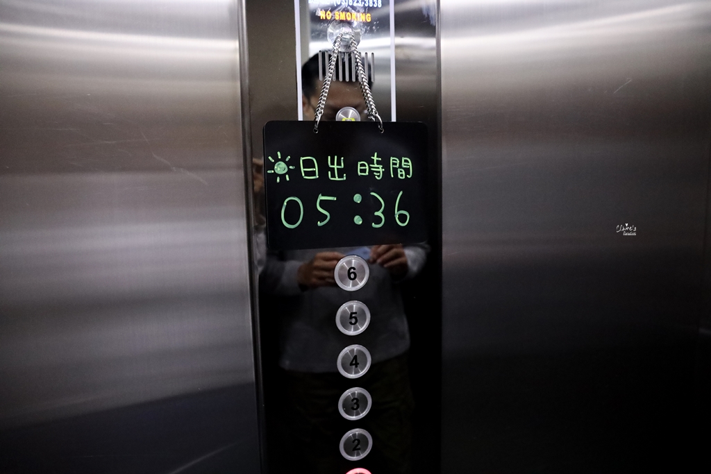 漫漫日出總共有六層樓,民宿內設有電梯,不必提著行李辛苦的爬上爬下,電梯內還有小黑板提醒旅客每天的日出時間,如果爬得起來,在房間就可以看到日出了。