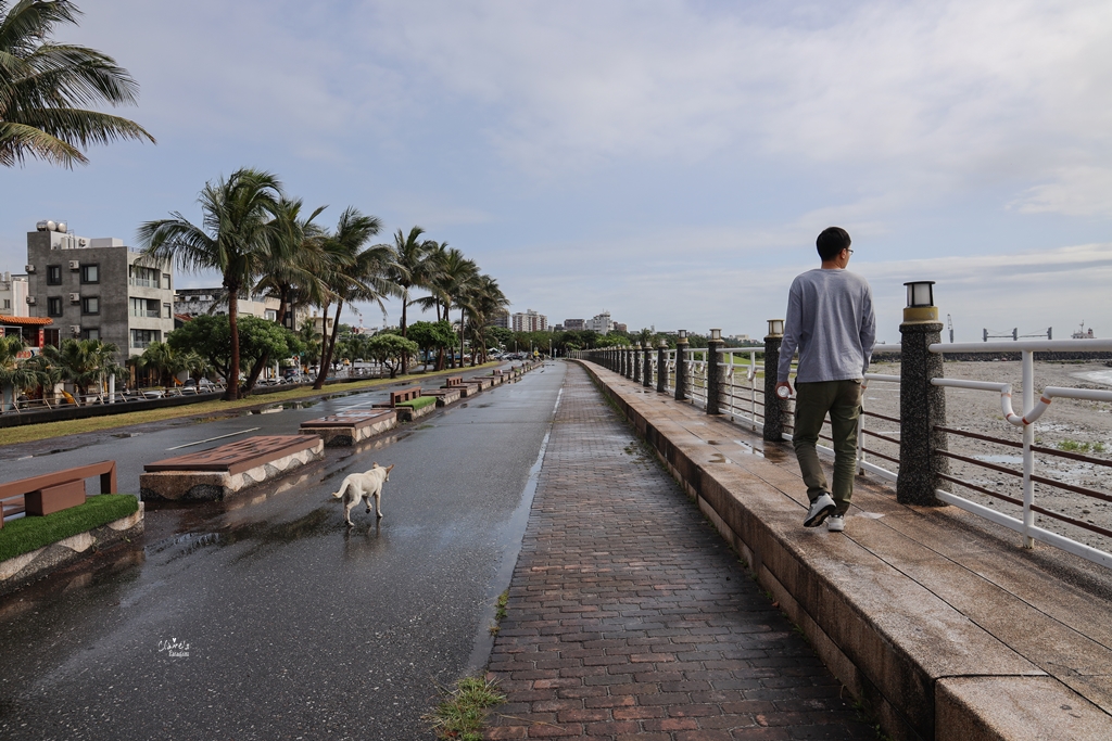 漫漫日出的對面是北濱公園,遊客不多,步道走起來滿舒服的,偶爾還會遇到狗狗跟著我們一起散步。這隻白狗跟著我們走了好一陣子,就在我跟牠說,「如果你繼續跟下去的話,我就要帶你回台北了喔~」,然後牠就…轉頭離開了(心碎)。