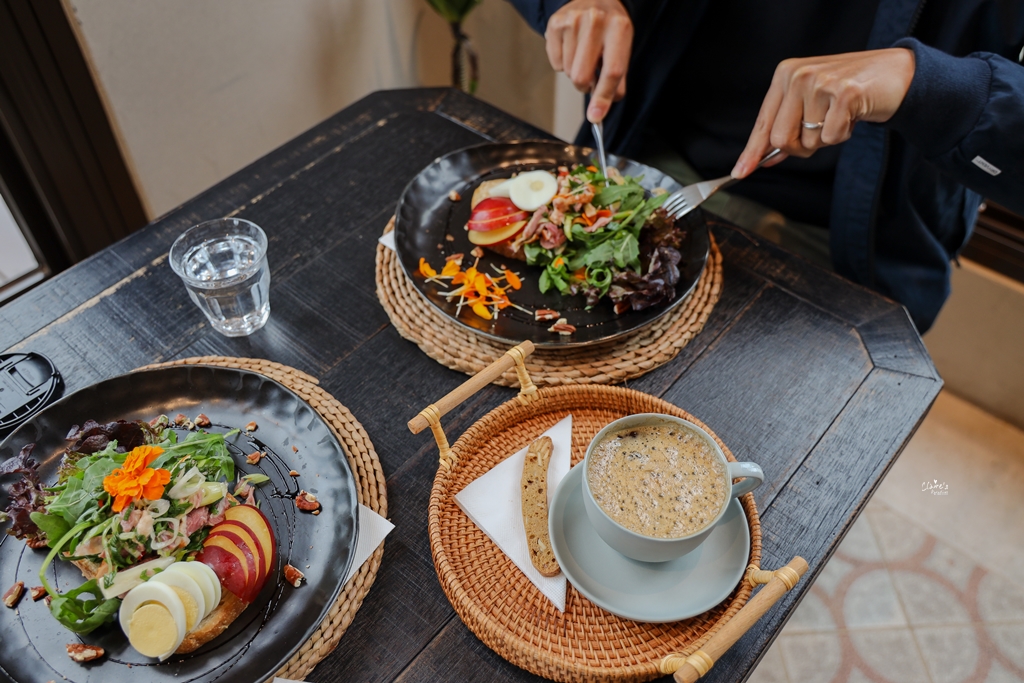 既然來到宜蘭,我們就點了當地的特色美食─煙燻鴨賞開放式三明治,飲品的部分則點了熱美式,這裡的咖啡有兩種豆子可以選擇─蒔花5號與7號,5號的味道較為清爽、7號則是偏向重烘培,習慣喝淺培的我選擇了5號。