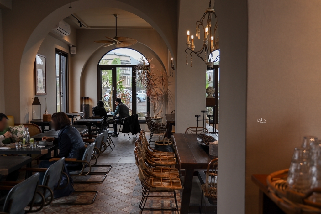 蒔花真的太美了,難怪人潮總是絡繹不絕。從點完餐之後,我就一直穿梭在店裡拍個不停,每個細節都不能放過! 我很喜歡這種彩度較低的裝潢風格,整間店以大地色系為基底,輔以各種有特色的吊燈、擺飾,並以綠色盆栽做點綴,整體氛圍相當具有異國風情。