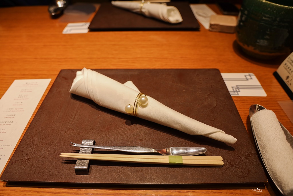 這裡每一桌都有專人服務,我們的服務人員是一位貌似滿資深的姐姐,每次上菜的時候,她都會搭配桌上的菜單,用英文跟我們解釋這道菜的內容,但是她講得很辛苦,我們也聽得很吃力,其實很想跟她說不用特別講解沒關係的,也覺得對她很不好意思…我會努力把日文學好的!
