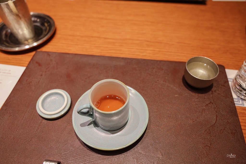 第一道菜是螃蟹清湯,蓋子一打開,就聞得到濃濃的海味,喝下去之後,覺得心跟胃都暖了起來。