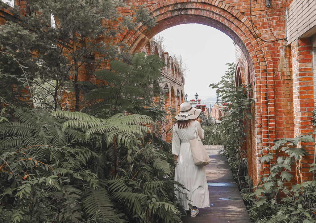 雖然佔地不算廣,但是青立方的每個景都非常好拍,這整面斑駁的紅磚牆搭配綠色植栽,就像來到山中的古堡一樣。沒想到在新店的半山腰,距離市區僅有20分鐘車程的地方,有著這樣美麗的秘境。