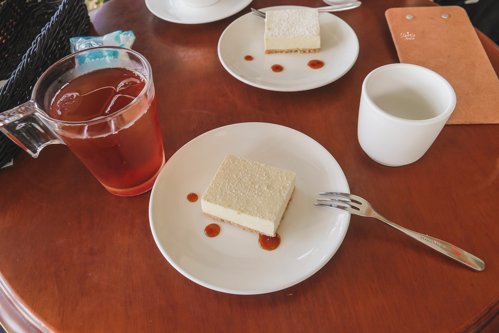 甜點則是酸甜清爽的慕斯蛋糕與冰紅茶,蛋糕給得很大塊,非常有誠意,吃完之後對青立方的印象又更好了!(之前去過的幾間很好拍的餐廳,主餐份量都只有兩三口…不是小鳥胃的我根本吃不飽阿阿阿~~~)