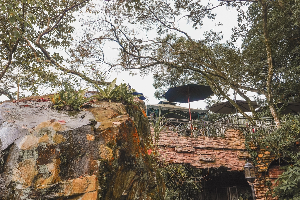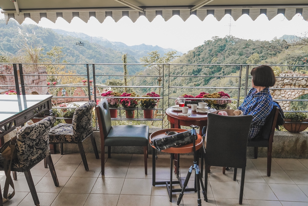 但是一踏出戶外,眼前就開闊了起來~這裡就是我很推薦的座位,不但可以享受被群山環繞的感覺,由這裡往下俯拍,更能營造出天空之城般的魔幻感。景觀位只有三桌,務必早早前來劃位!