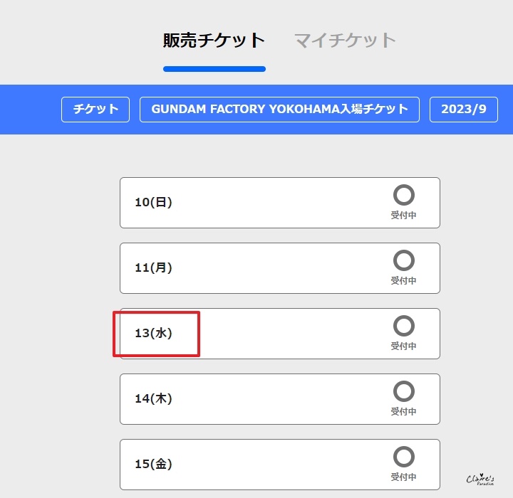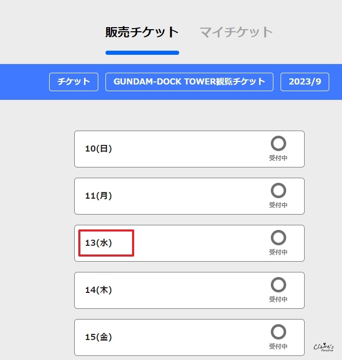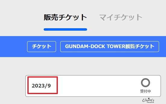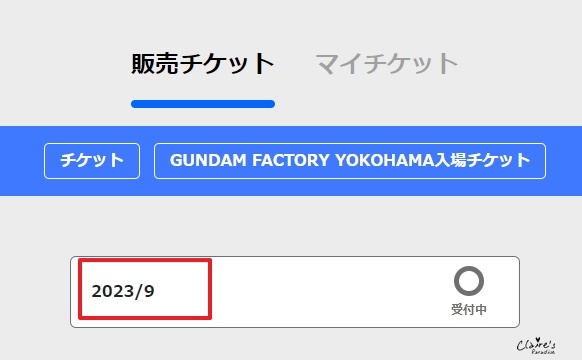 畫面會顯示目前可以購買的月份,像現在可以購買2023/9的門票,點選以進入到下一步。