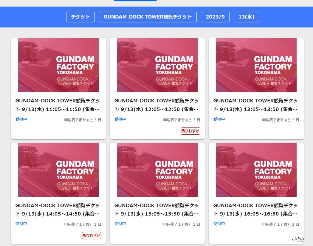 重點來了! Gundam-dock tower的票雖然也可以在現場購買,但是強烈建議事先在網路訂票,而且越早買越好,因為每一個場次的參觀人數都是有限的,沒有提早訂票的話,很可能會導致想參觀的日期與場次已經沒有票了的窘境。