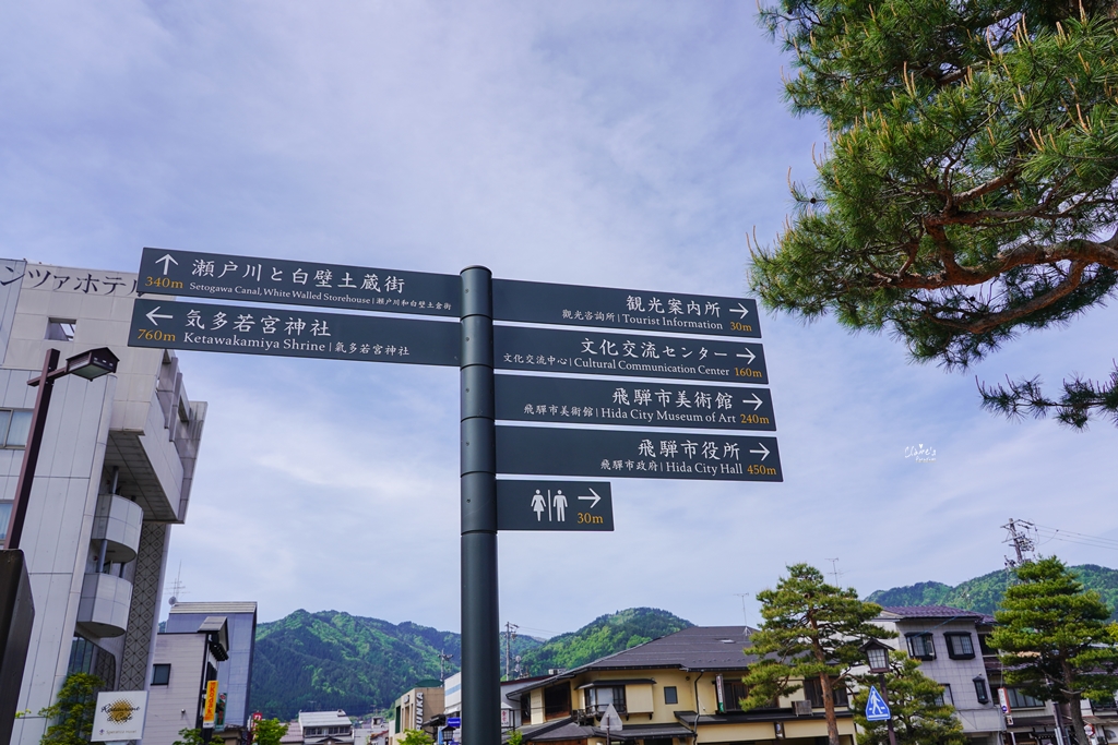 在飛驒市區,隨時都會看見指示牌,比較知名的景點都標示在上面了,就算隨便走也不怕迷路,而且竟然也有廁所的方向指引,太適合像我這種隨時都在找廁所的人了。