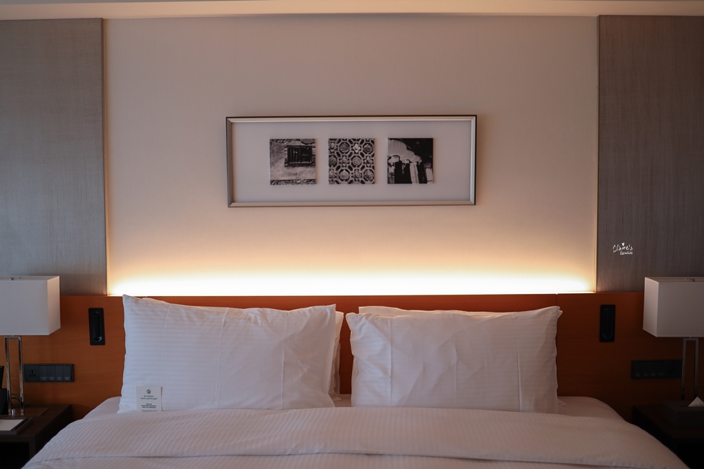 這裡要特別提一下他們的床,只要是一大床的房型,不論是都會客房還是行政客房,或是更高等級的套房,都是採用特大尺寸的雙人床(220cm*203cm),就連淺眠的先生也一覺到天亮,就可以知道這張床有多好睡了。