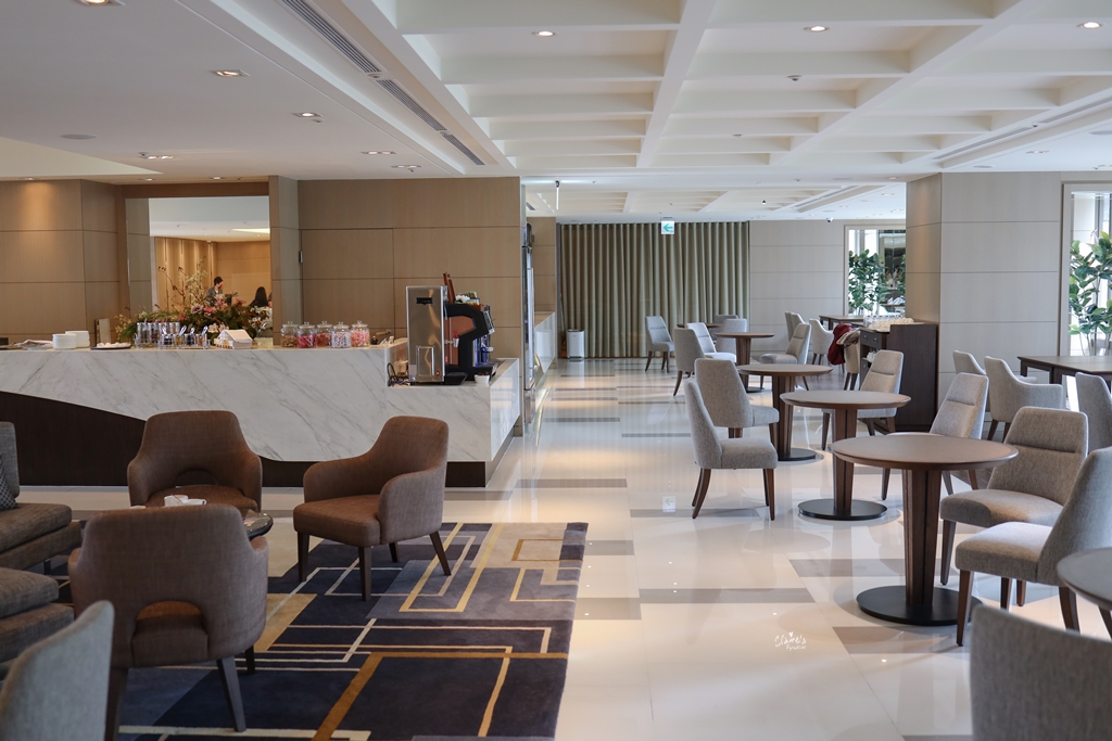 來到行政酒廊,只要跟櫃台報上房號即可,有空位都可以入座。這幾張完全沒有人的照片是我隔天早上才補拍的,入住當天下午,大約四點半過後,座位就幾乎全滿了。
