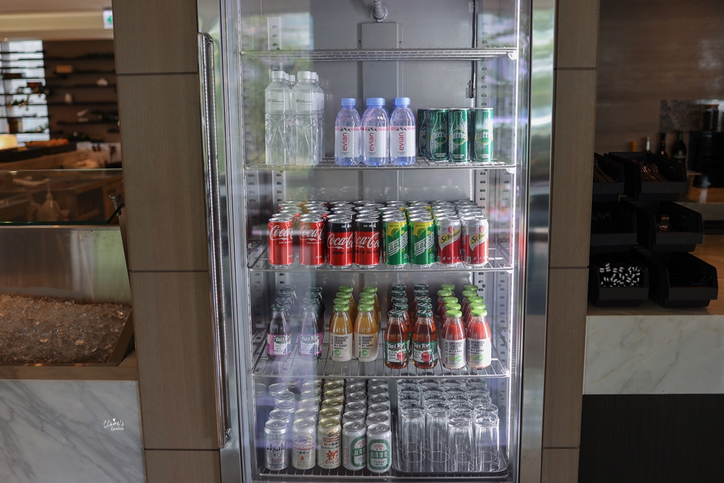 飲料櫃裡面有礦泉水、氣泡水、汽水、果汁,以及三種品牌的啤酒,這些都是全天候供應的,我覺得就飲料的種類與品牌來說,算是非常有誠意了,讓你可以從早上就開始一路喝到晚上。(即時房價查詢:Agoda/Booking.com)