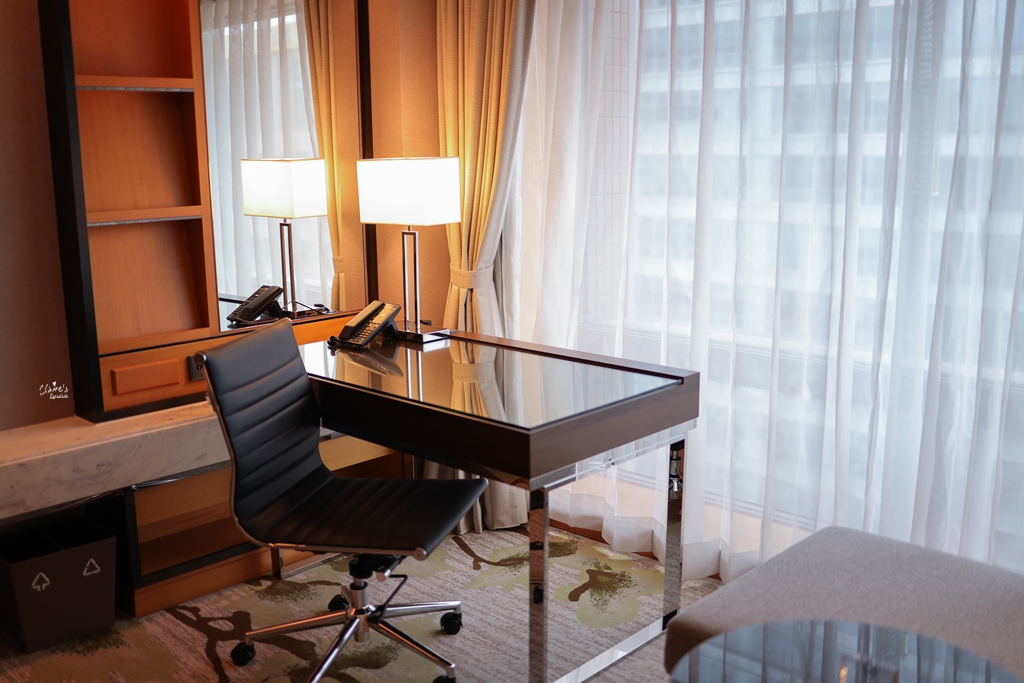 因為光線充足,要在房間內工作也是沒問題的,先生當天就充分利用了這張書桌,後來還乾脆把電腦帶去行政酒廊邊喝邊工作(錢難賺…)。