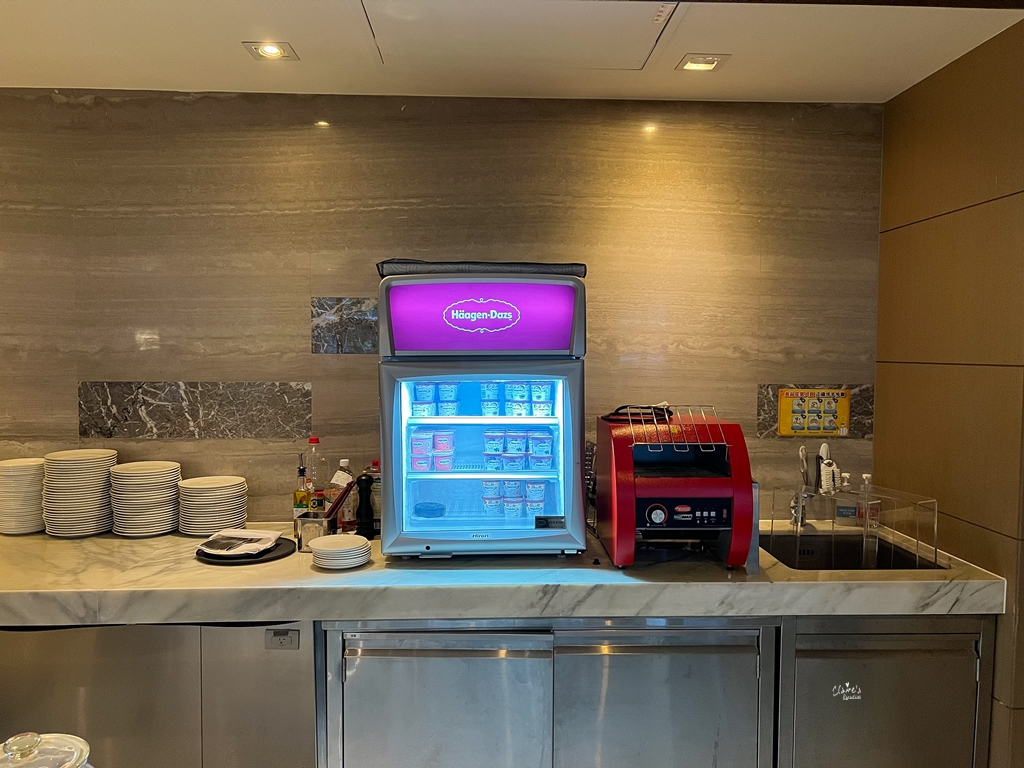 我一看到這個Haagen-Dazs冰箱,眼睛都發亮了!!總共有4、5種口味可以選擇,如果有需要,跟服務人員說想要的口味,他們就會拿給你了~