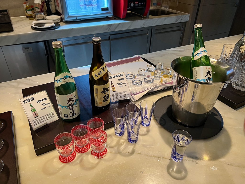 行政酒廊的開放時間是10:00~22:00,在這段期間內,只要是行政客房的旅客都可以隨時來這裡享用小點心與各式飲品,但是僅限內用,不能外帶回房間。而每日的17:00~19:00還有Happy hour,會提供清酒、紅酒、白酒、調酒等酒精類飲品無限暢飲,還有輕食可以吃,我們那天從下午四點待到七點,才心滿意足的離開,胃口小的朋友或許連晚餐也可以省下來了。