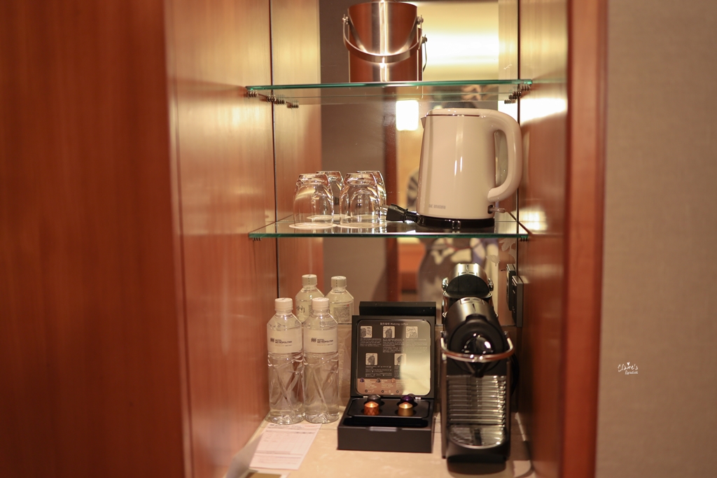 Mini bar的部分沒什麼驚喜,就是簡單的沖泡飲品與膠囊咖啡,不過沒關係,我們有行政酒廊就夠了!