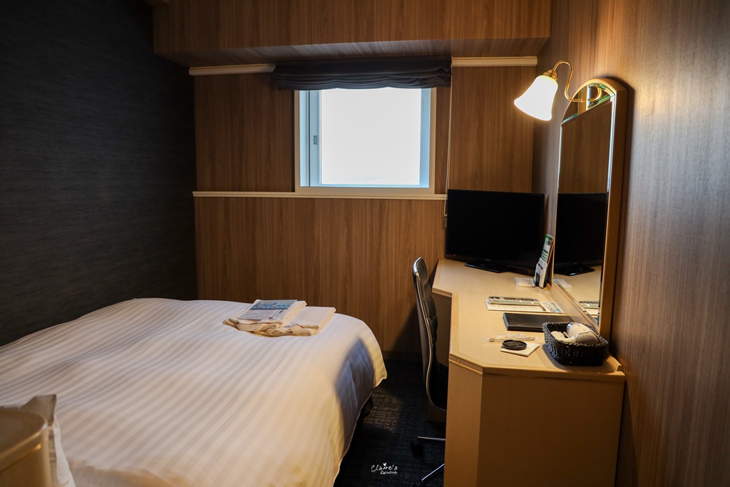 我們訂的是禁菸的標準雙人房,大小約4.5坪,日本的商務旅館大多會區分禁菸與可吸菸的房型,這點在訂房時要留意(曾經訂過可吸菸的房間,一走進去真的是滿滿的菸味…)。