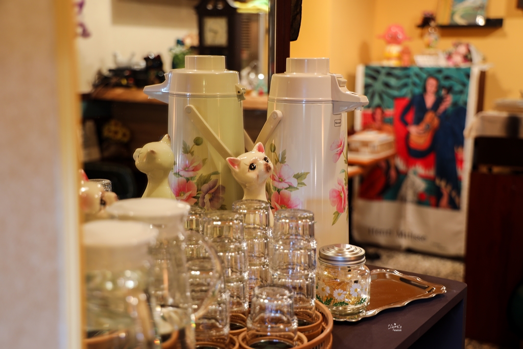 店主枝枝憑藉著過往在日本旅遊的美好經歷,開設了這間自己喜愛的喫茶店。 裡面所擺設的復古熱水瓶、公仔、海報等等,為這裡營造出一種老派的浪漫情懷。
