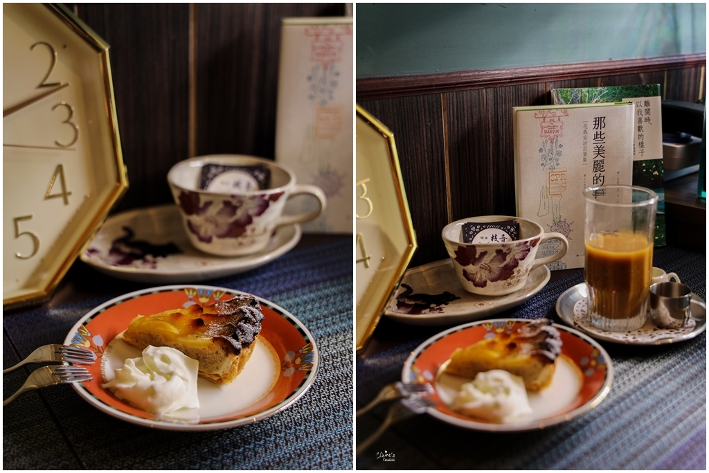 來到這裡除了拍照,食物的部分也很推薦,絕對不會讓你失望的。喫茶枝音的餐點很簡單,鹹食僅有火腿起士三明治與焗烤咖哩厚片,甜點則有三種,但還是會以當日有供應的品項為主。