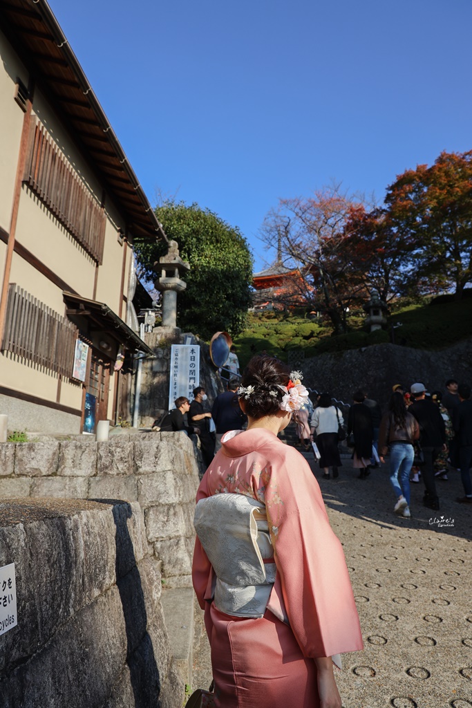 先來個前情提要,當天早上,我們到璃光和服穿了和服並安排了攝影服務,拍攝結束後已經是下午一點多。先生對於和服的忍耐程度只有兩小時…我們就先回店裡把他的衣服換下,接著繼續前往清水寺。