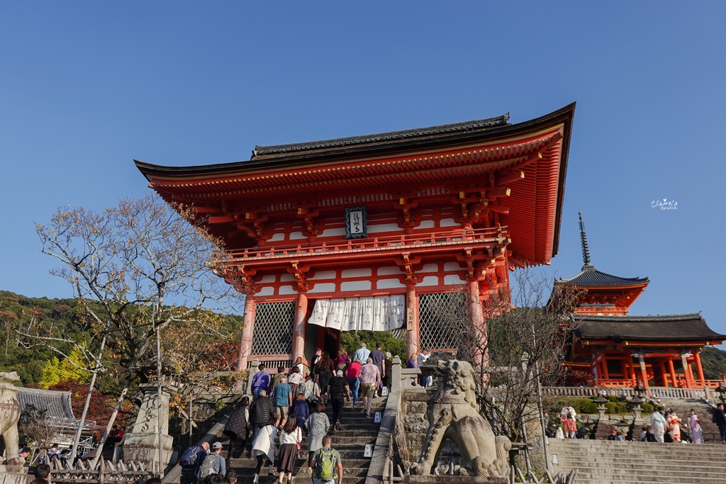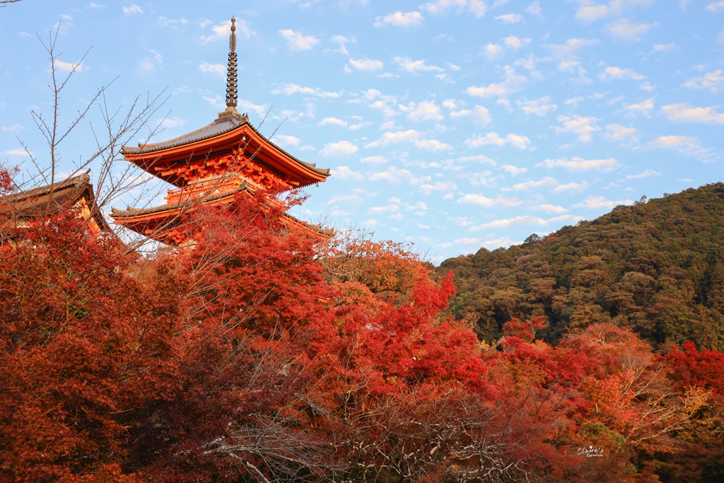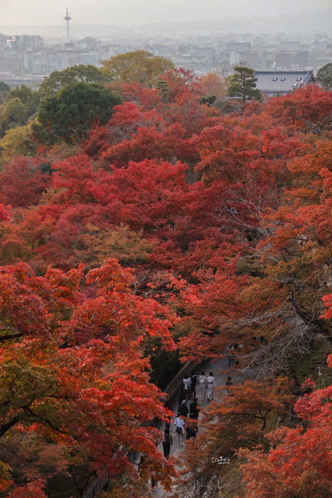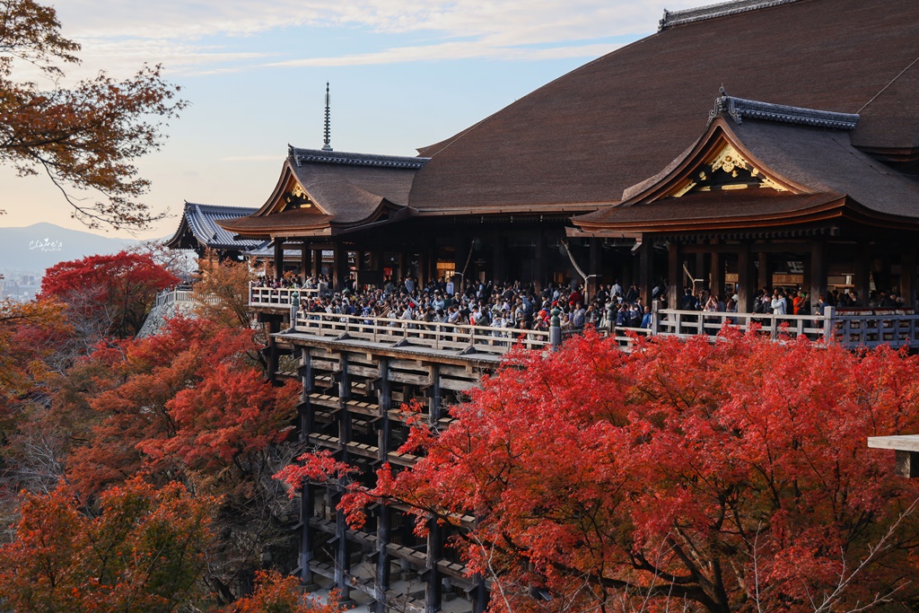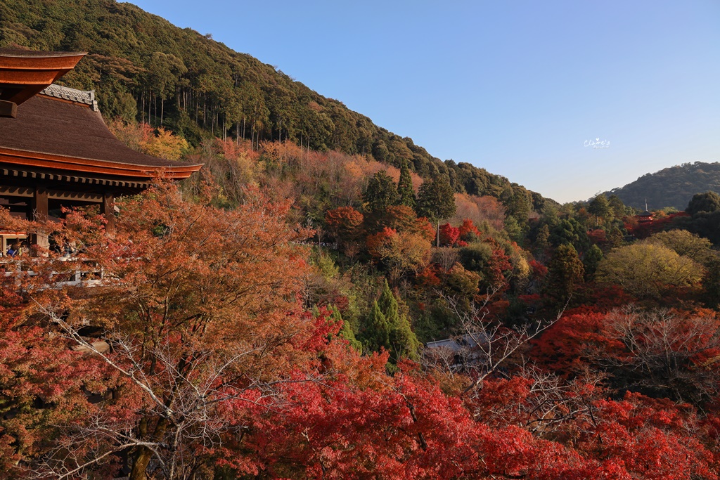 被火紅的楓葉圍繞著的清水舞台真的太美了!!!看到的當下覺得非常感動,幸好我們沒有因為人多而卻步,也幸運的在來到清水寺的這天,剛好是楓葉最美的時候,一切都是這麼的剛好。