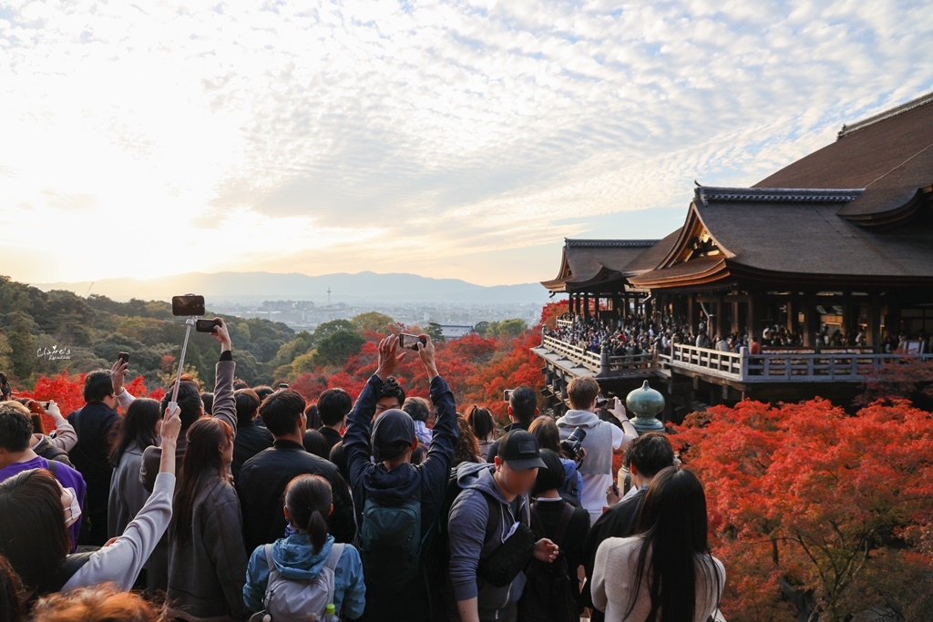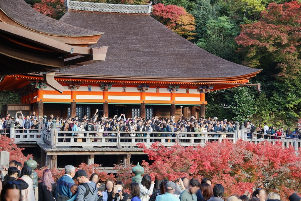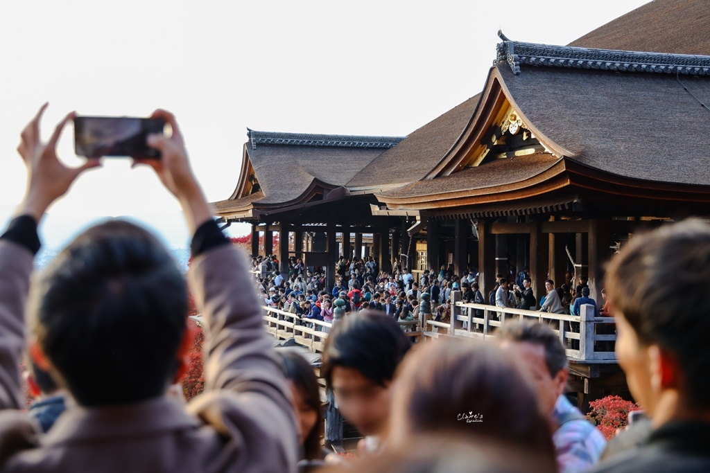 由於適逢楓葉季,加上日本這幾年的遊客數量快速成長,清水寺的人潮比以往更多,裡面的盛況就像下面這張照片一樣,不管走到哪都是滿滿滿的人…