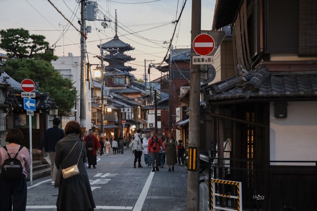 心滿意足的離開清水寺之後,時間來到了下午四點多,差不多要歸還和服了,於是我們從清水寺正門離開,打算慢慢散步回八坂神社。我還在盤算著可以順道逛一下二年坂、三年坂,有時間的話再吃個點心之類的,殊不知…我太天真了,請看下下張圖。