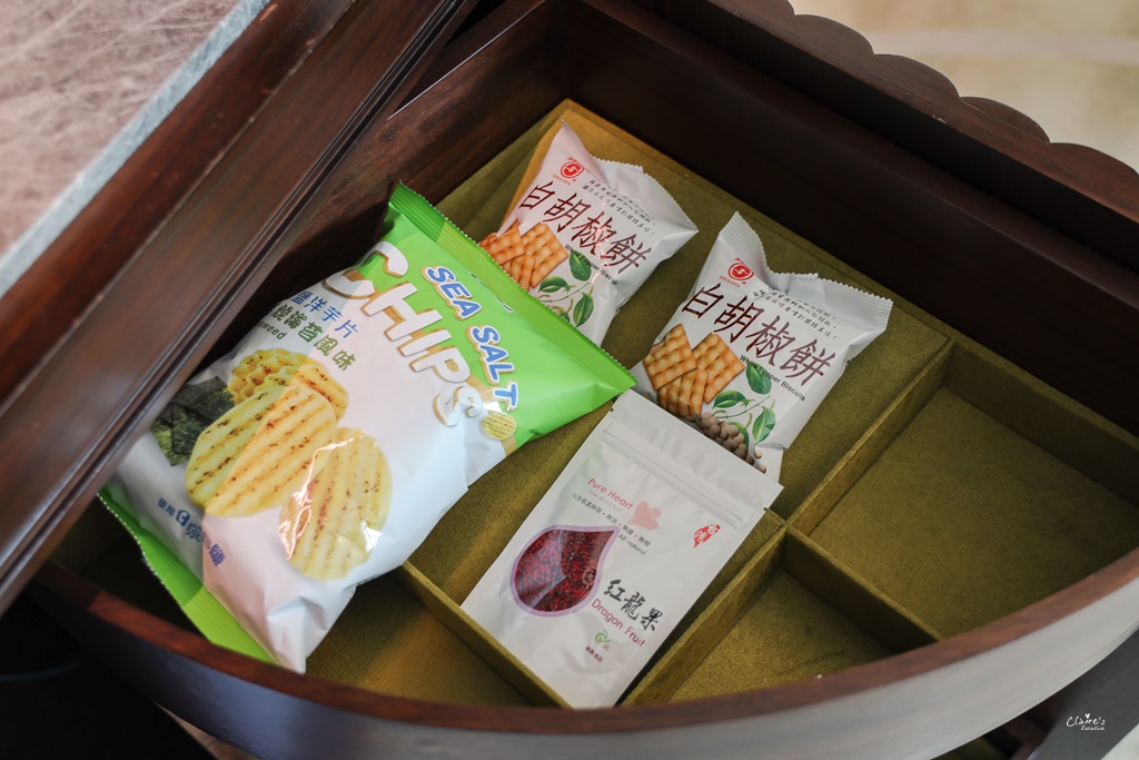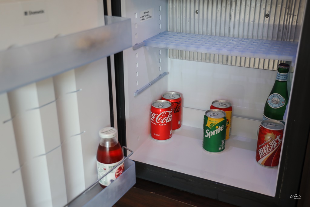 膠囊咖啡跟零食以及冰箱內的飲料都是免費的,零食全部是台灣的品牌,除了火龍果乾我們吃不太習慣,其他都很好吃! 飲料除了可樂跟雪碧,還有一瓶氣泡水,與我最愛的蘋果西打跟黑松沙士(熱愛各種台味的飲料跟食物)。