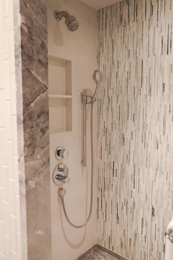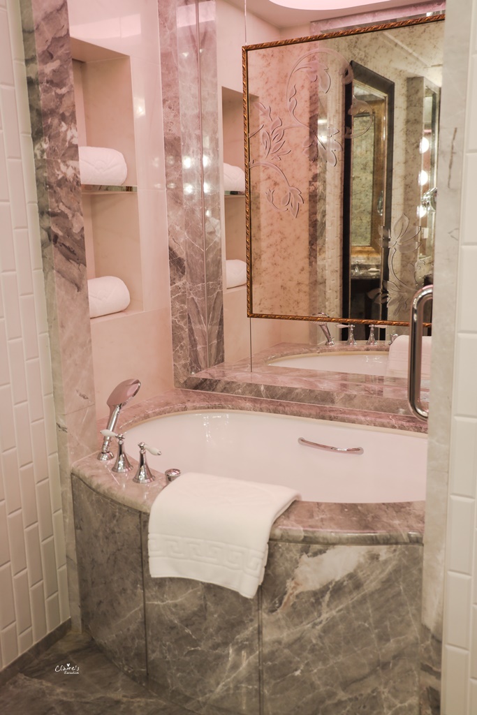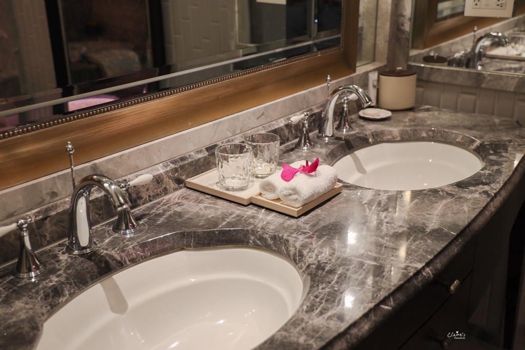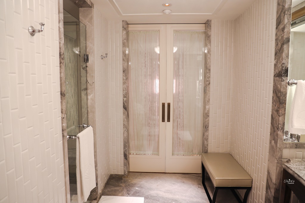 接下來也是我很喜歡的大理石浴室(應該說這裡沒有一個空間是我不喜歡的),牆壁採用白色系的瓷磚,加上大理石的點綴,讓這間浴室顯得特別奢華夢幻,如果以後不小心中了樂透,我也要把家裡的浴室改造成這樣。