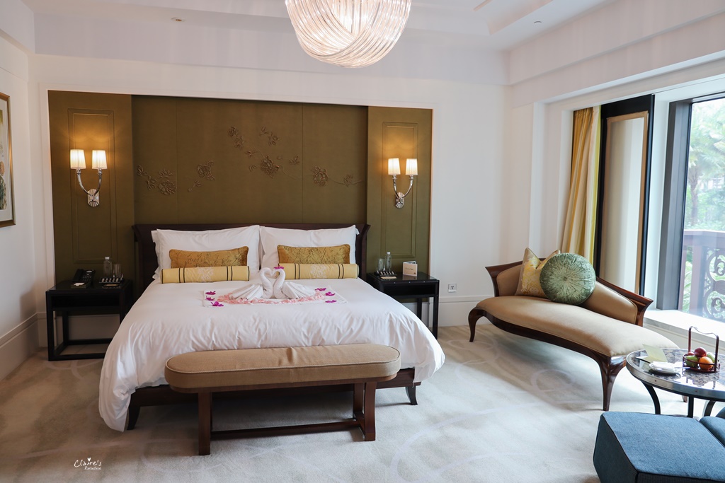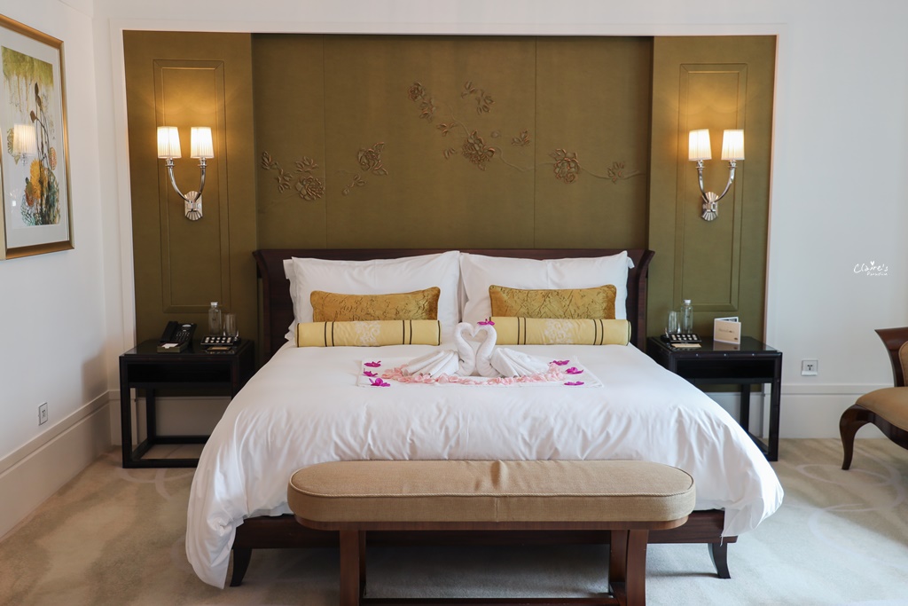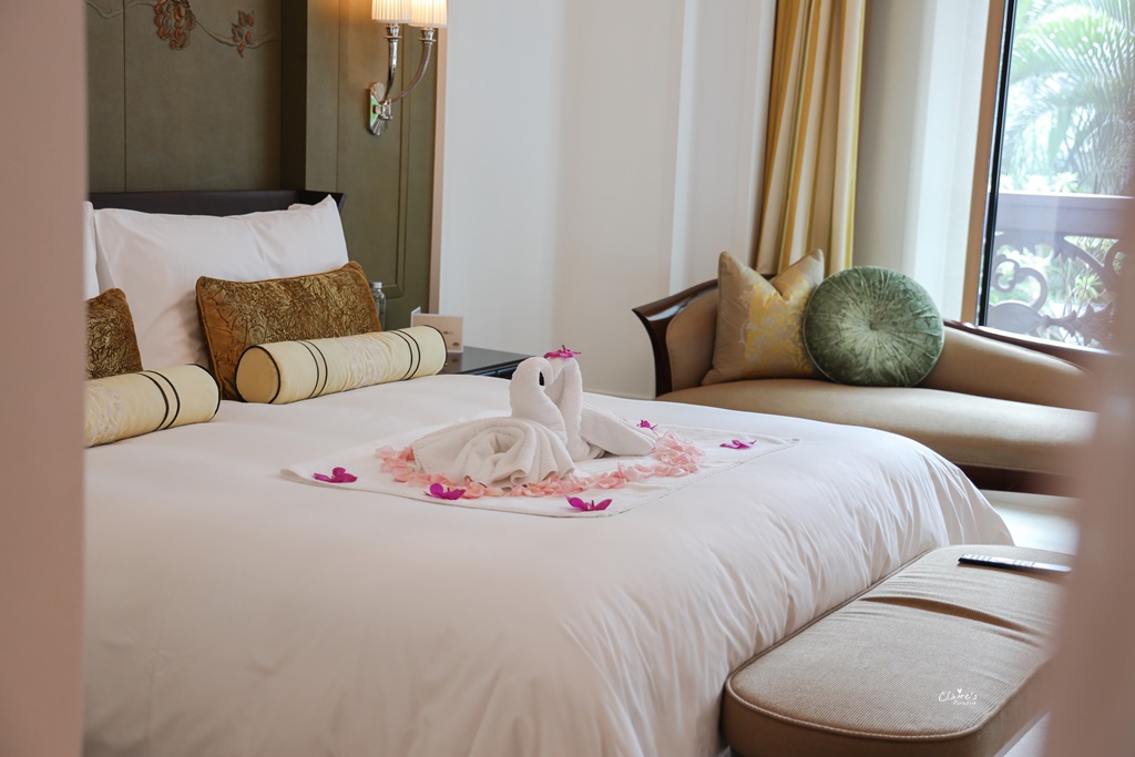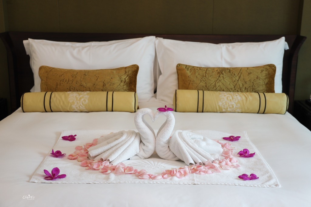 另一個讓我笑到嘴巴要裂開的重點就是這一對愛心天鵝!!因為我在訂房時,有註明我們是來慶生與慶祝結婚周年的,於是就獲得了這個浪漫的布置。看到它們,就想起我們去馬爾地夫度蜜月的場景,看來,應該要每年都來這裡重溫度蜜月的感受才對(先生的錢包瑟瑟發抖中…)。