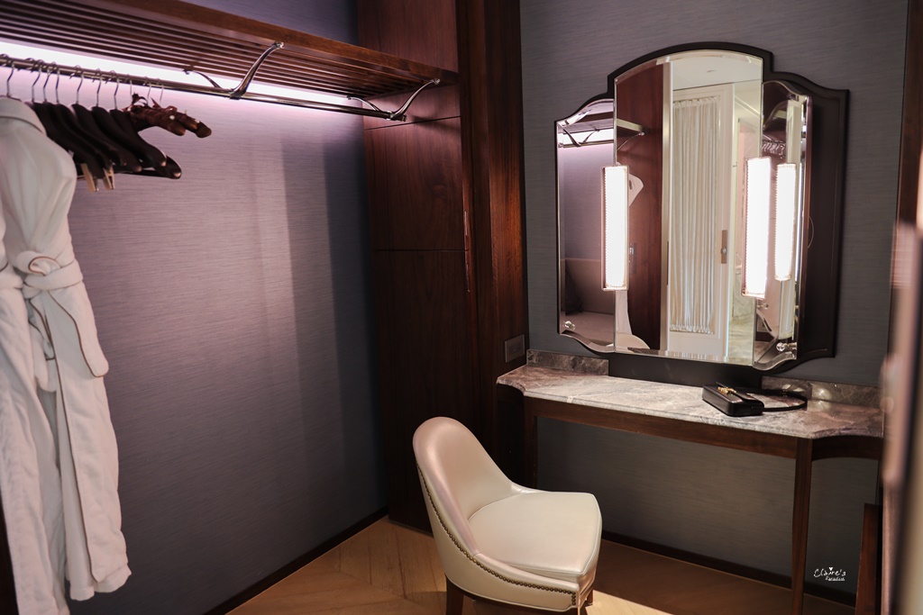 當我看到這間更衣室的時候,一直重複的說著「是更衣室耶~~~好大間的更衣室!!!」,而且裡面還有一個超夢幻的梳妝台。擁有一間寬敞的更衣室一直是我的夢想,想不到夢想竟然在這裡被實現了(雖然只有一天…)。