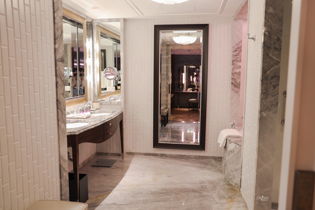 房間內包含了King size雙人床,獨立的更衣室、兩間衛浴設備、書桌、窗邊還有一組舒適的躺椅,要在裡面奔跑個幾圈都沒問題。