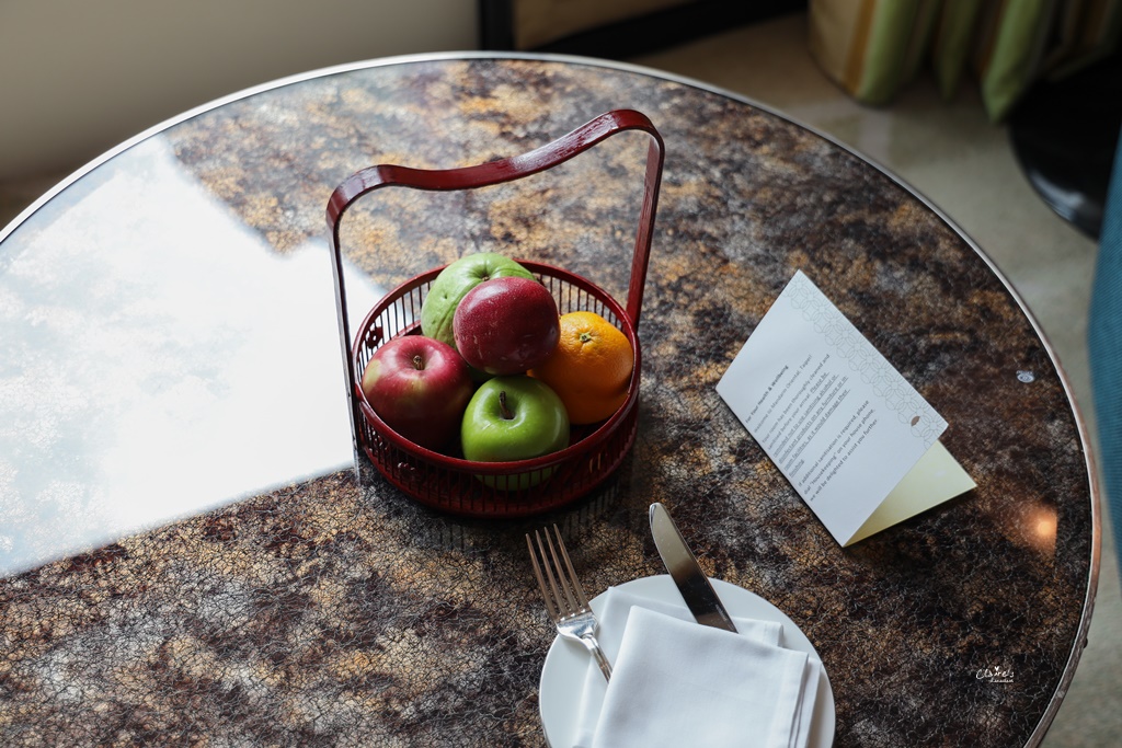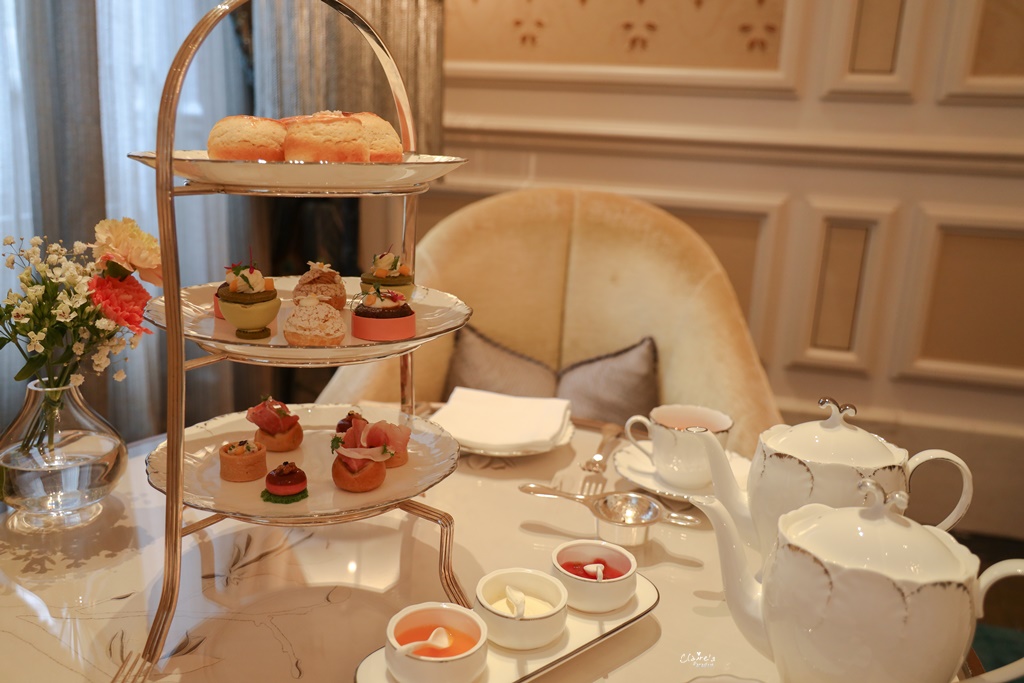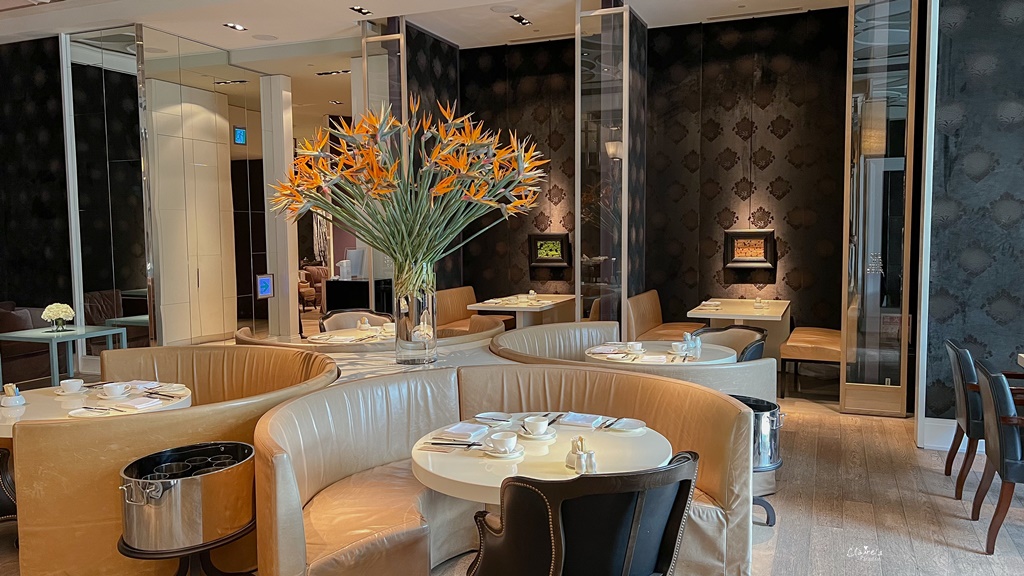 行政禮遇附贈的下午茶,用餐地點在一樓的青隅餐廳,這裡最知名的就是三層英式下午茶,並且會隨著不同的時節與主題,調整當季的菜單。