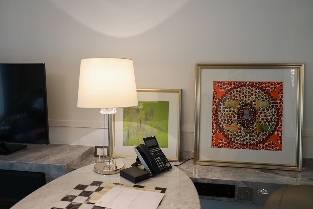 文華東方的每一個區域都好精緻,公共空間擺設了不少的藝術品與畫作,就連電梯走廊也超級美(下圖)。