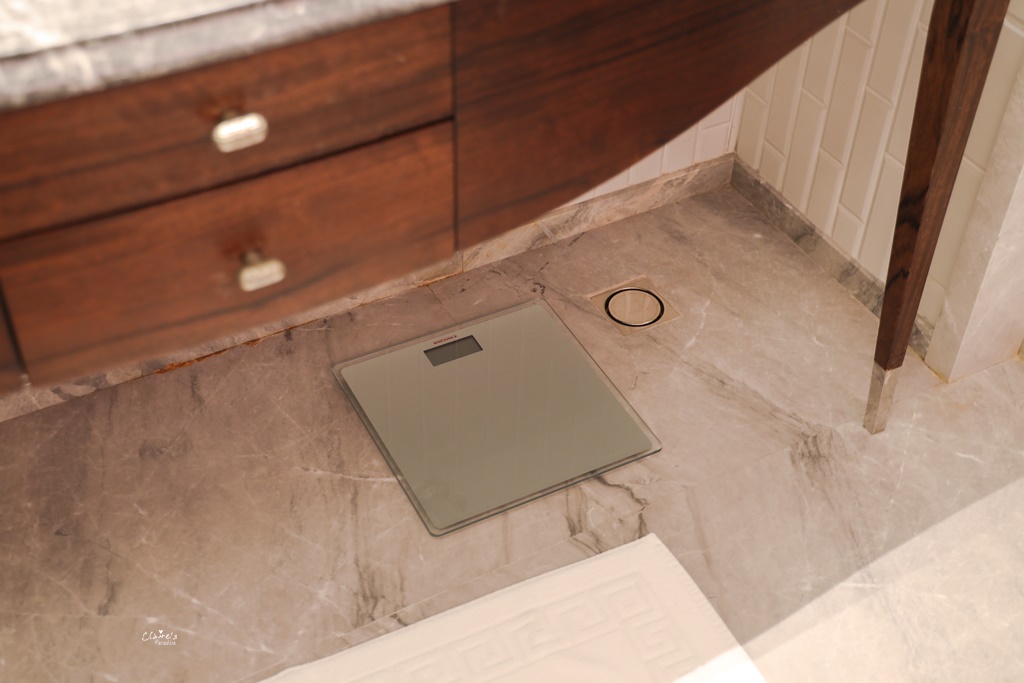 洗手台底下有一台體重計,似乎在提醒我不要吃太多,不過既然是出來放鬆的,減肥阿熱量阿什麼的就先拋到腦後了。