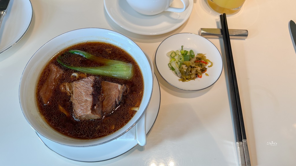 吃完這碗粥,其實已經有點飽了,但是又嘴饞想再嘗試其他菜色,於是我選了牛肉麵,事先詢問過服務人員這碗麵的份量,在得到了「很小一碗,只有兩、三口而已」的回答之後,我就放心的點了。