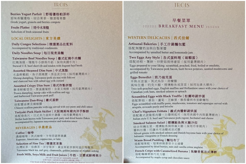 早餐是每日的7:00~10:30在文華cafe供應,據說以前是自助式的,但是由於疫情的緣故,直到我入住時都還是單點的形式。