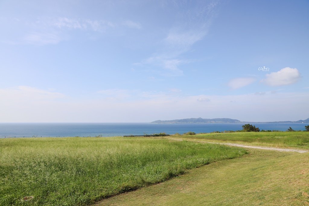 吃飽之後終於有力氣走出去外面看海了,餐廳樓上有一個觀景台,如果店裡剛好客滿,帶著冰淇淋站在這裡吃也很不錯。從這裡看過去的視角,剛好是八重山群島,運氣好的話,還可以看到西表島的日落呢!