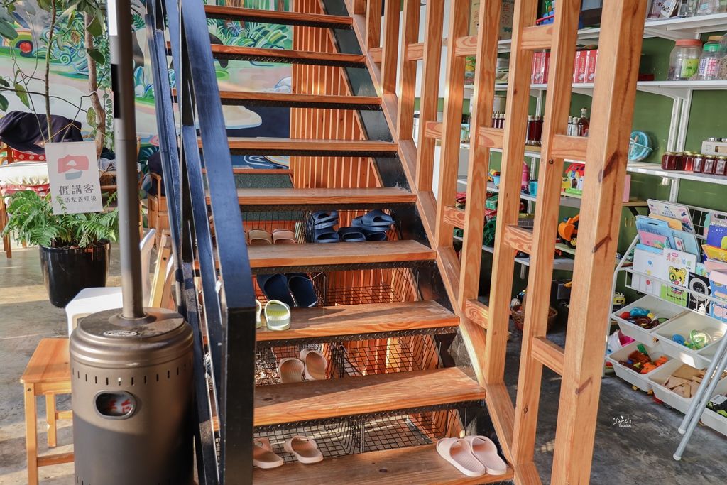二樓以上是住宿空間,要上樓的話必須要更換室內拖,鞋子與拖鞋都放置在樓梯下方的置物籃內。