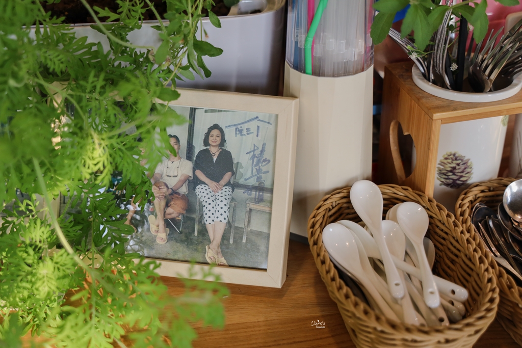 一、二樓分別都有用餐區,時間到了就依照事先安排好的位子入座。晚餐是客家特色料理,有非常下飯的梅干扣肉與客家小炒、兩盤青菜、茶碗蒸,還有飯後水果。每一道菜都是宜臻與家人親手做的,很有家常味,在這裡吃飯的感覺就像回到家或是到朋友家作客一樣的親切。