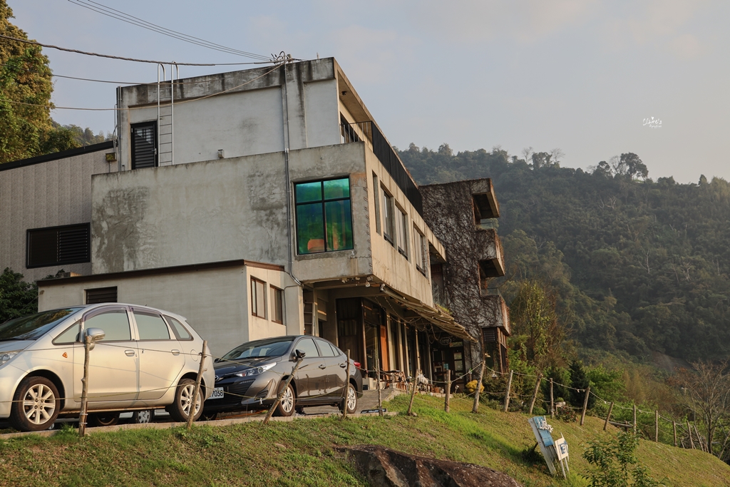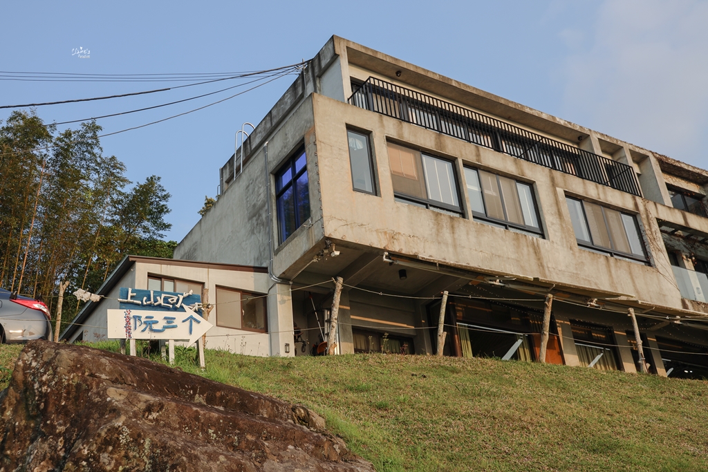 遠遠的就能看到這棟清水模建築,但是一直到看見門口「上山回家/阮三個」的牌子,才放下心來,確定沒有走錯路。民宿前方就有空地可以停車,開車前來的話不必擔心找車位的問題。
