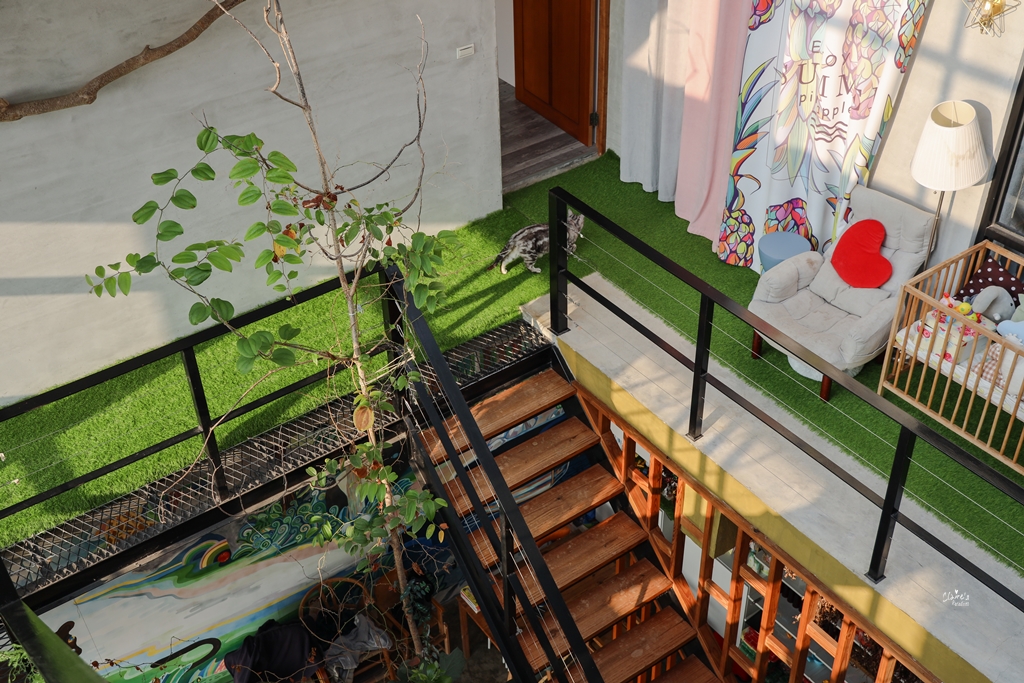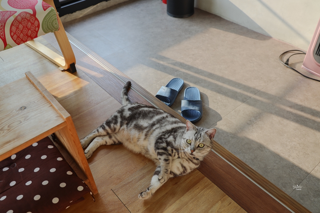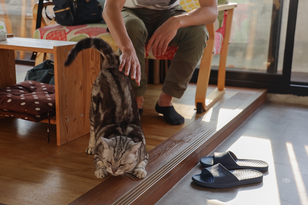 民宿裡養了一隻貓與一隻兔子,好像還有狗狗,不過我們那天沒有遇到牠。貓咪很親人,平常都是在公共空間自由來去,偶爾還會到客房串門子,只要牠一出現,馬上就變成全場的焦點,「好可愛~~~」的聲音此起彼落(我也是其中一個),喜歡小動物的話,那你一定要來這裡住一晚,真的非常療癒(而且環境又很棒!),不過如果會害怕貓、狗、兔子,可能就要考慮一下了。