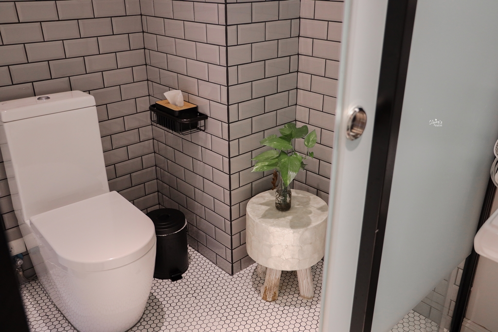 衛浴區的設計也很美,洗手台的左右兩邊分別是浴室與廁所。黑舍所使用的沐浴品牌是茶籽堂,另外還備有無印良品沐浴鹽,可以泡一個舒服的熱水澡~