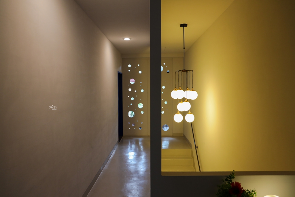 窗戶上簍空的圓型洞洞,巧妙的在引入自然光的同時,還能兼顧房內的隱私。雖然這些圓圈代表的是浪花打上礁石所產生的氣泡,但是當我第一眼看到官網照片時,還誤以為是月亮呢! 不知道有沒有人也有這種感覺?(一個圓圈,各自表述)
