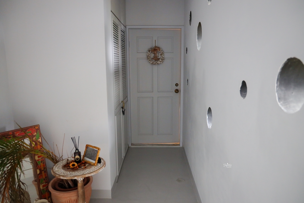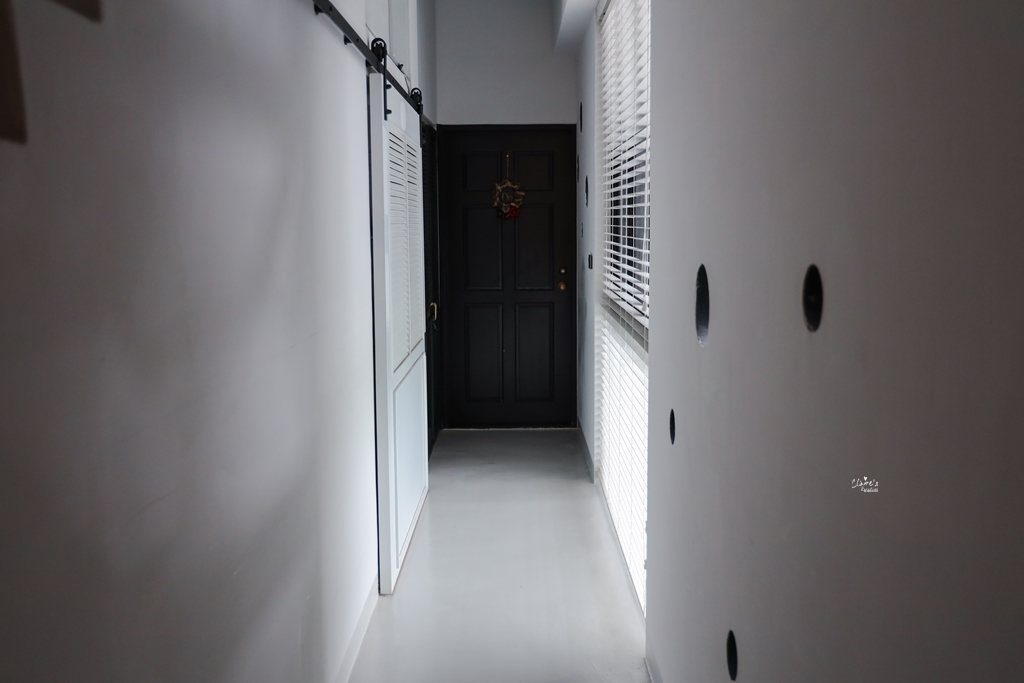 樓梯間簡潔俐落的黑白色系,再加上一旁的百葉窗,很有美式居家裝潢的風格(但是房間很法式~)。